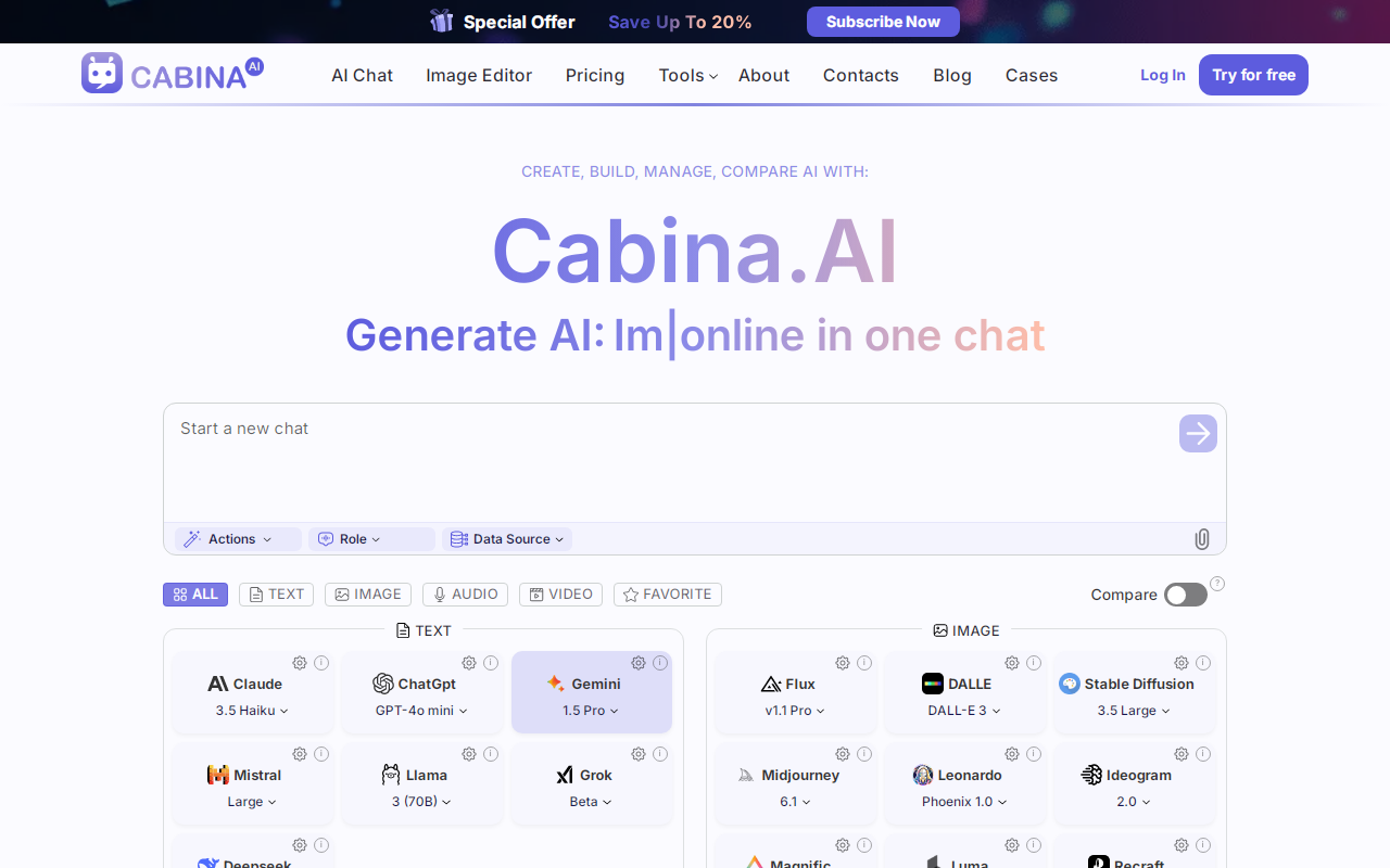 总的来说,Cabina.ai试图把分散的AI能力收拢到一个界面友好的地方,让你不用在多个应用间来回切换,省时也省心。