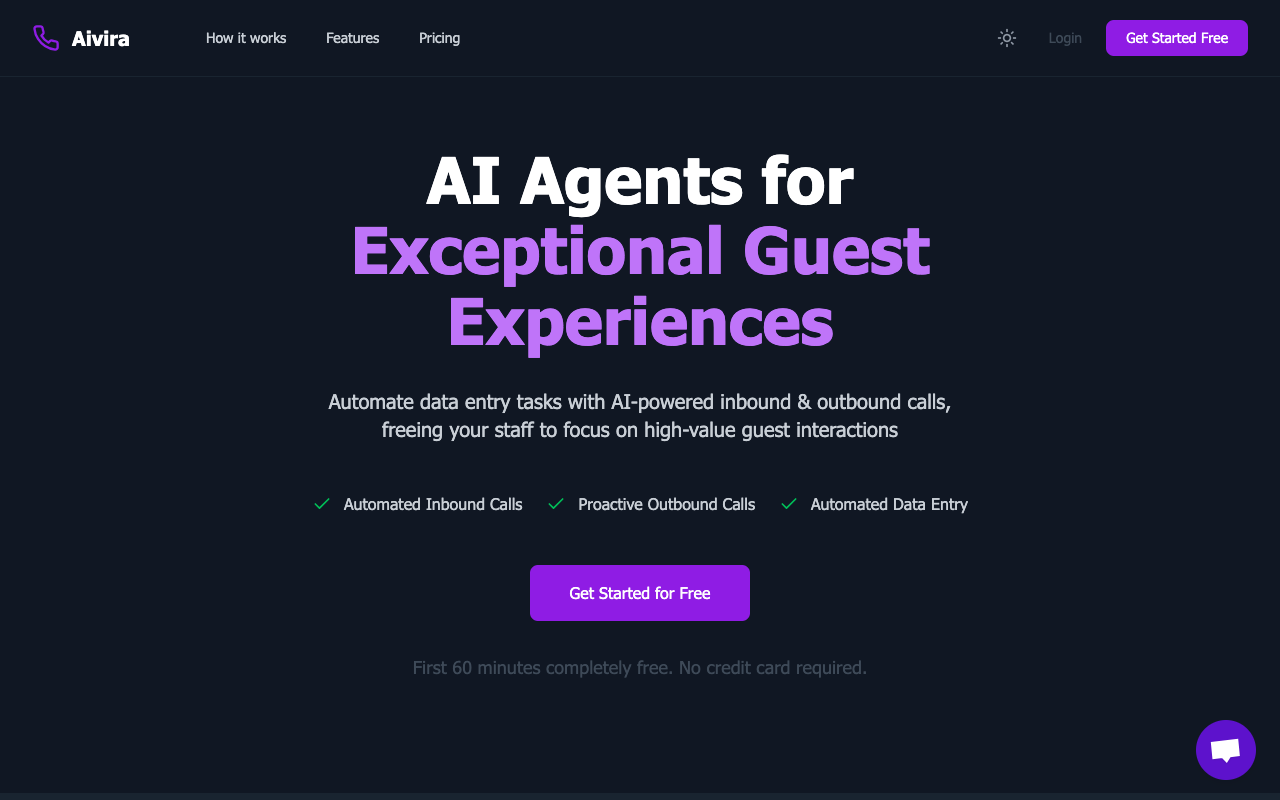想让你家酒店的前台员工不再被电话和表格淹没吗?Aivira就是为此而生的AI帮手。它专门处理那些重复又耗时的活儿,比如接电话、记信息、更新系统,好让你的团队能腾出手来,真正去关心客人。