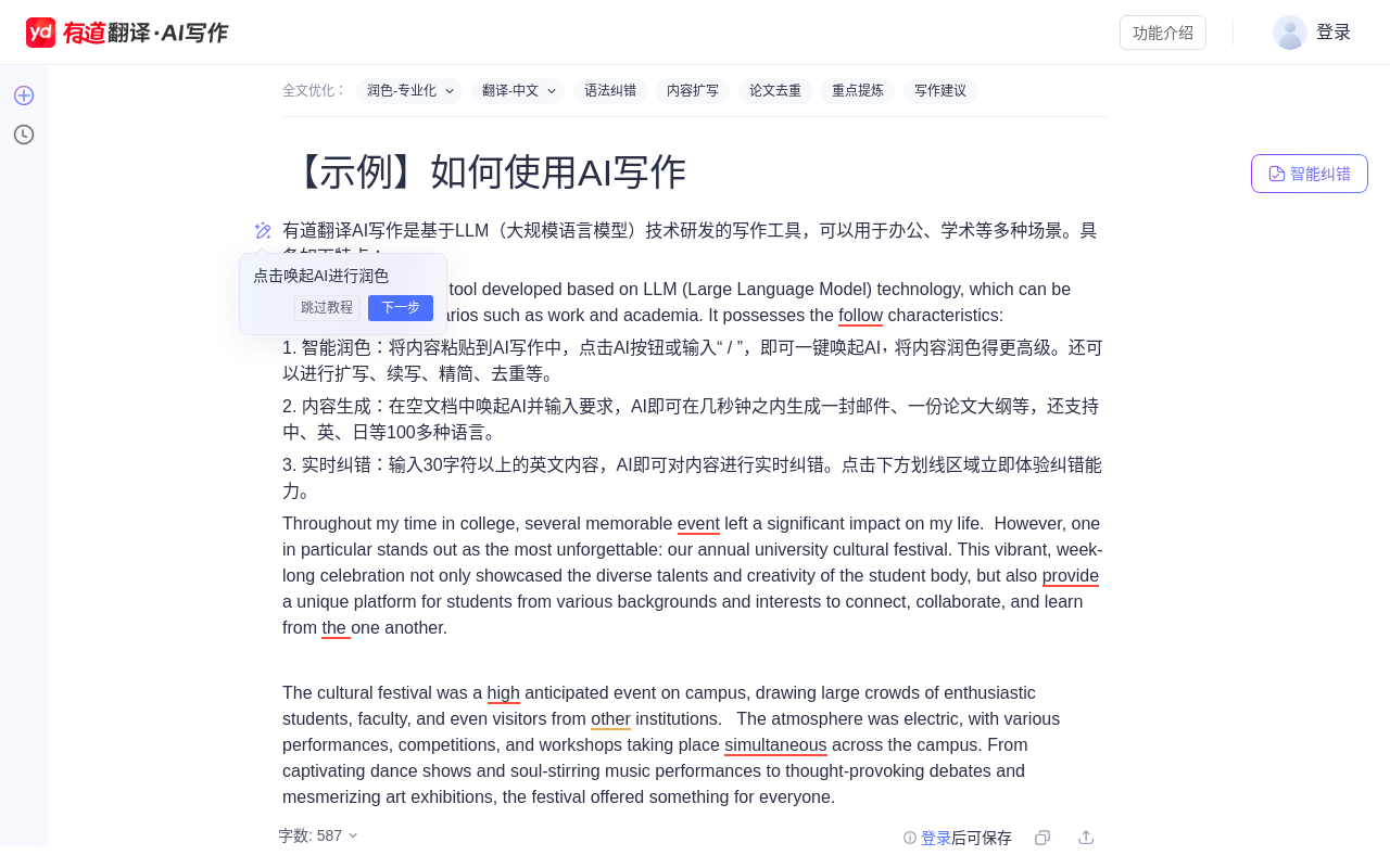 - 访问 https://fanyi.youdao.com/aiwrite/document(建议开启JavaScript)。