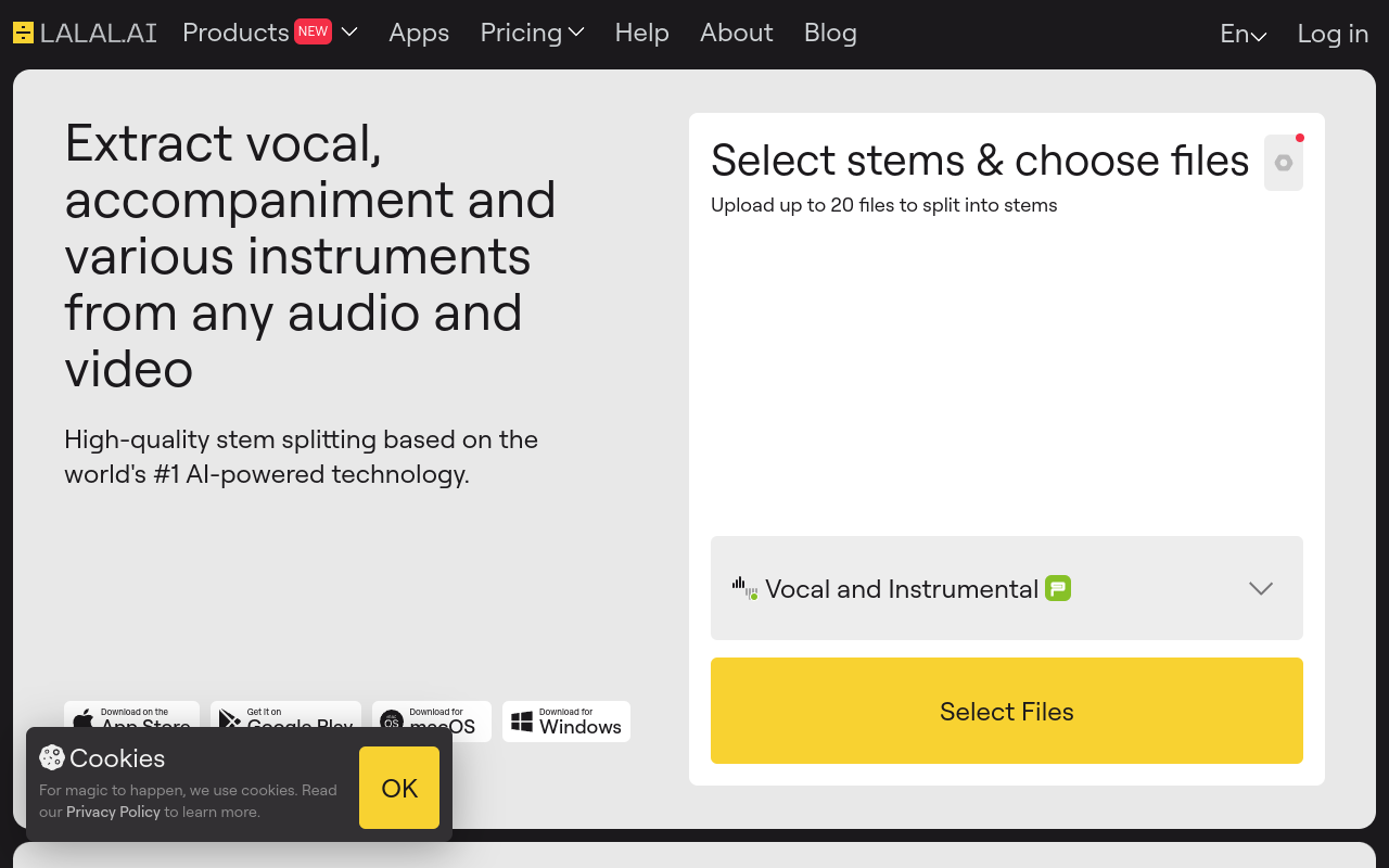 Lalal.ai 是一个用人工智能处理音频的平台。它的核心能力是把一首歌或一段录音里的不同声音分开,比如把人声和背景音乐分开,或者单独提取出鼓、贝斯、钢琴等乐器的声音。整个过程很快,而且能尽量保持音质。