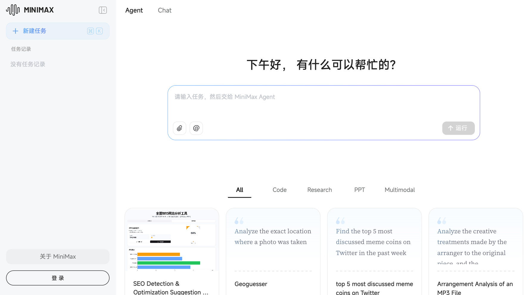 MiniMax Agent 是上海 MiniMax 公司打造的一款多模态 AI 助手。它的目标很直接:让你用说话或打字的方式,就能指挥它干活。无论是查资料、写东西、识别图片,还是进行语音对话,它都能接招。用他们官网的话说,就是“简单指令,无限可能”。