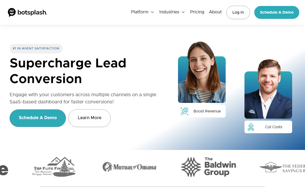 Botsplash强调“人”在循环中,不是完全用机器替代,而是让人工和自动化配合,让对话感觉更自然。部署速度比较快,平均上线时间不到两周。而且它针对抵押贷款、金融这类行业提供了更贴合的解决方案。