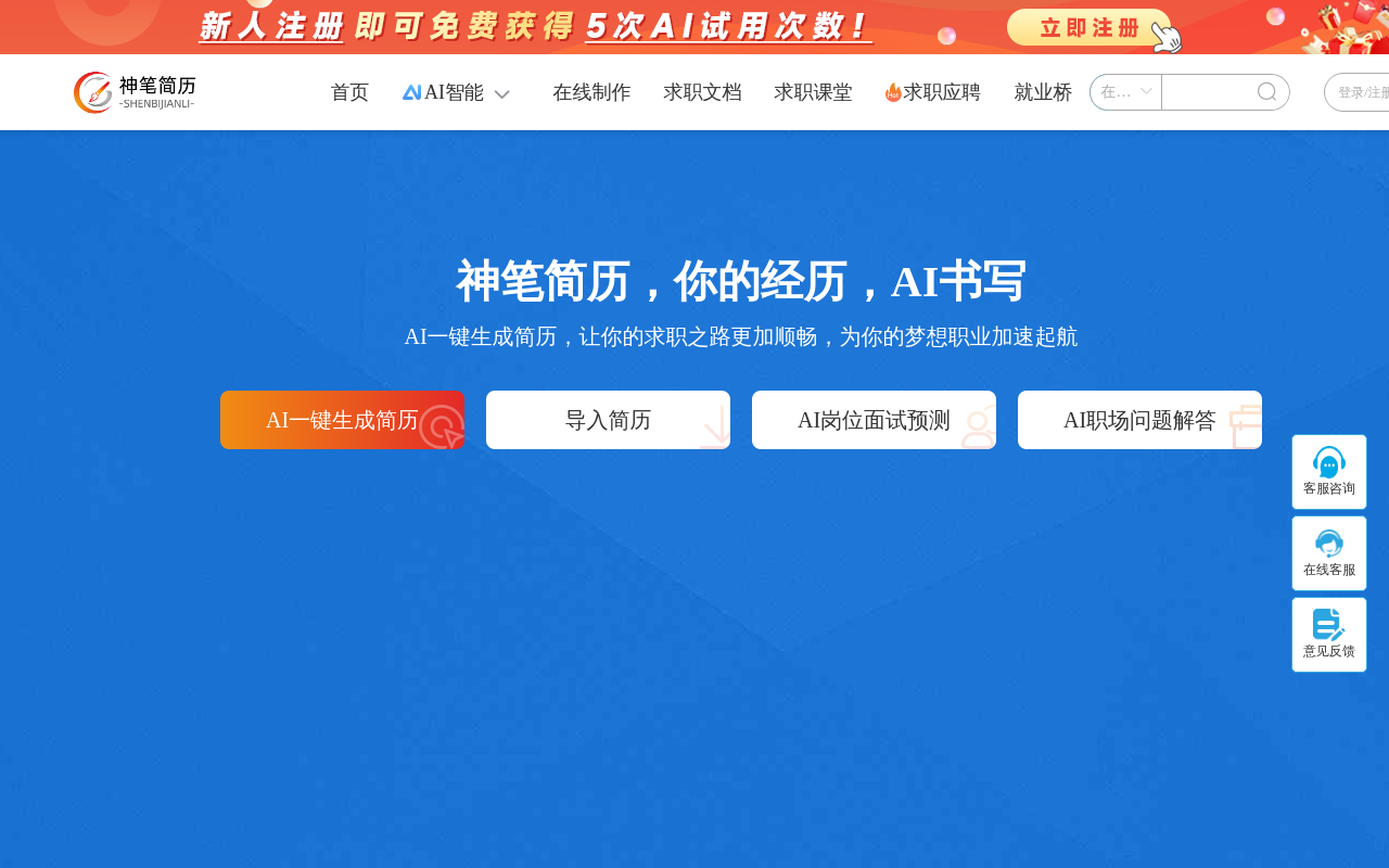 神笔简历是就业桥资讯服务平台的核心产品之一,专注于利用AI技术优化简历创作流程。作为一个综合性大学生就业服务平台的一部分,它提供从内容生成到格式优化的全流程支持。