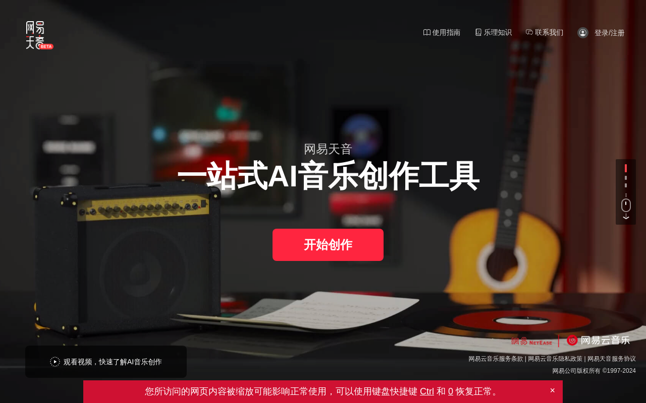 网易天音(Tianyin.163.com)是网易云音乐推出的AI音乐创作平台。它的目标很简单:让不会乐理、不懂编曲的人,也能轻松做出一首属于自己的歌。你只需要告诉它一个主题或一种情绪,它就能在几分钟内,给你一首包含歌词、旋律、编曲甚至人声演唱的完整作品。