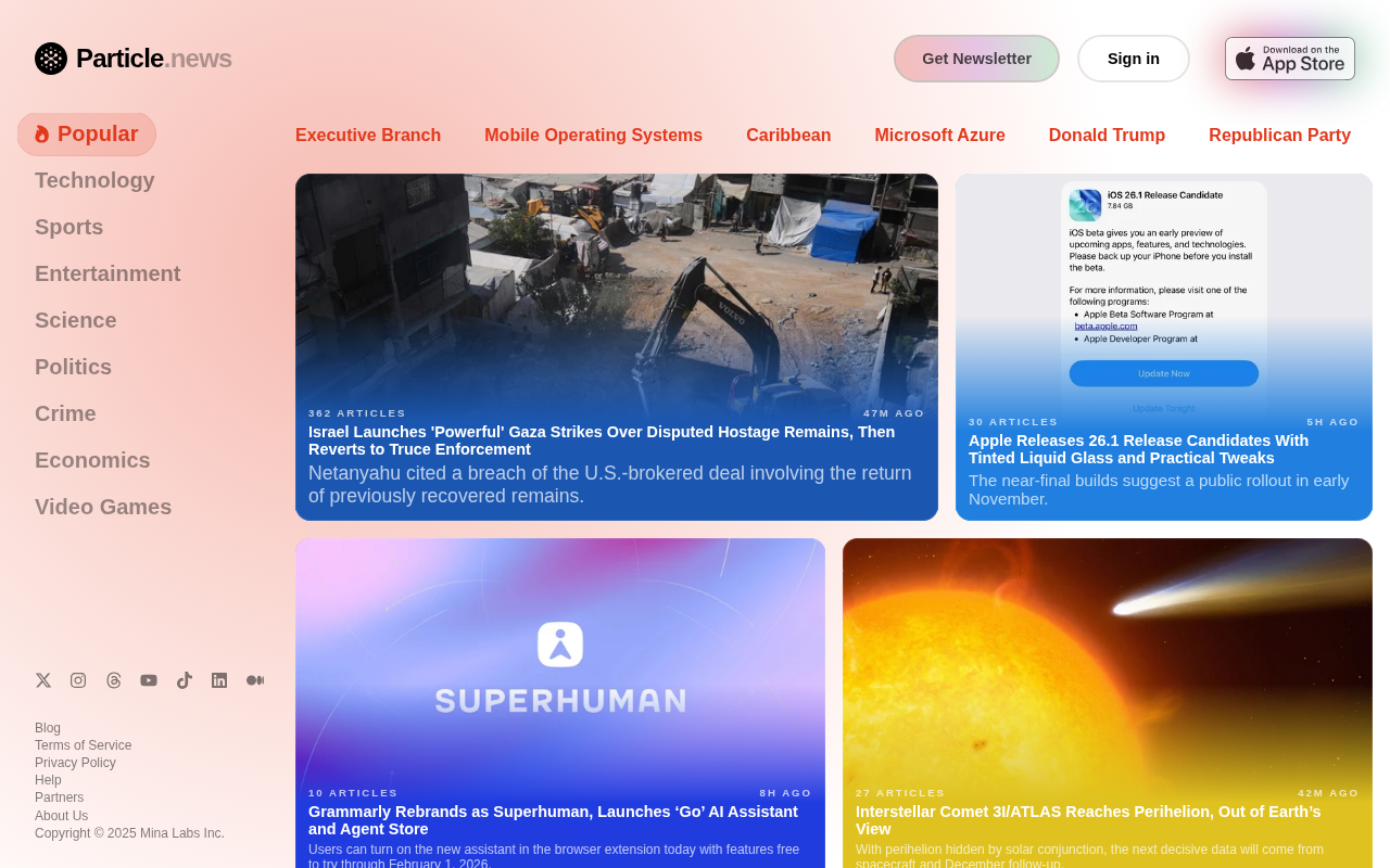 Particle Newshttps://particle.news)是一个综合性实时新闻聚合平台,口号是“Understand more, faster”——翻译成人话就是:更快地看懂更多事。它帮你从全球各地薅来新闻,省得你挨个刷App,还顺手帮你打破信息茧房。
