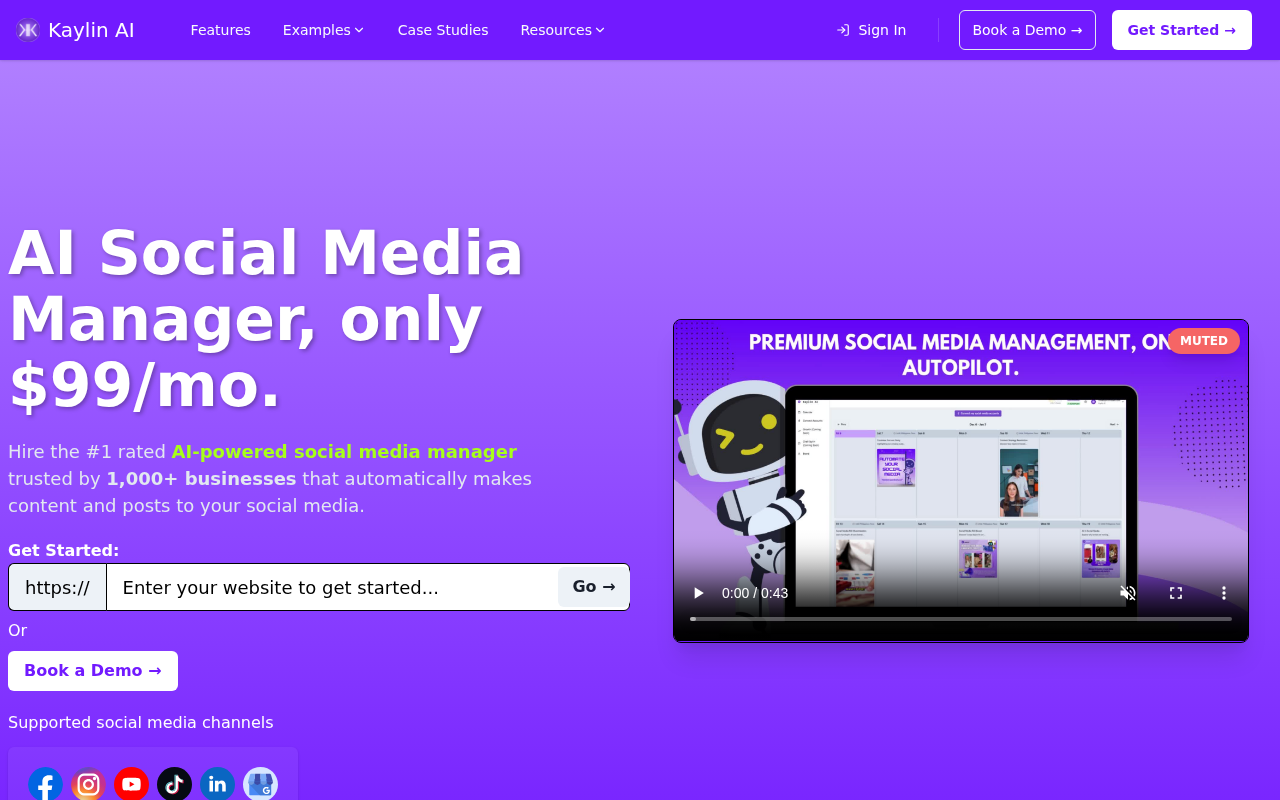 Kaylin AI是个靠谱的AI社交媒体管理工具,能自动化内容创建和发布,帮企业简化营销流程、降低成本并实现增长。如果你是小企业主或需要多平台内容支持,它值得一试。
