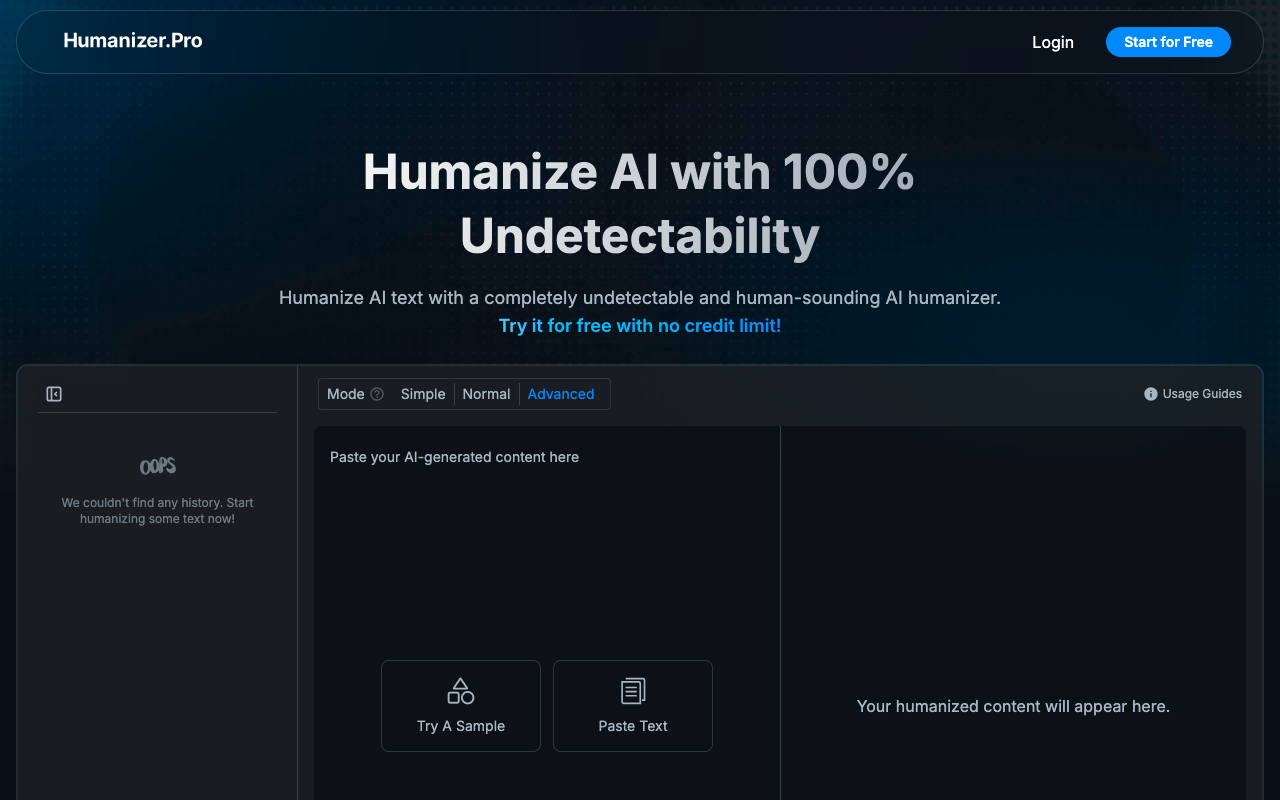 Humanizer.Pro是一个专门处理AI生成文本的平台。它的工作很简单:把那些读起来有点“机器味儿”、句式单一的内容,改写成更像真人手笔的文章。无论是学生交作业、博主写推文,还是职场人士准备报告,都能用得上。