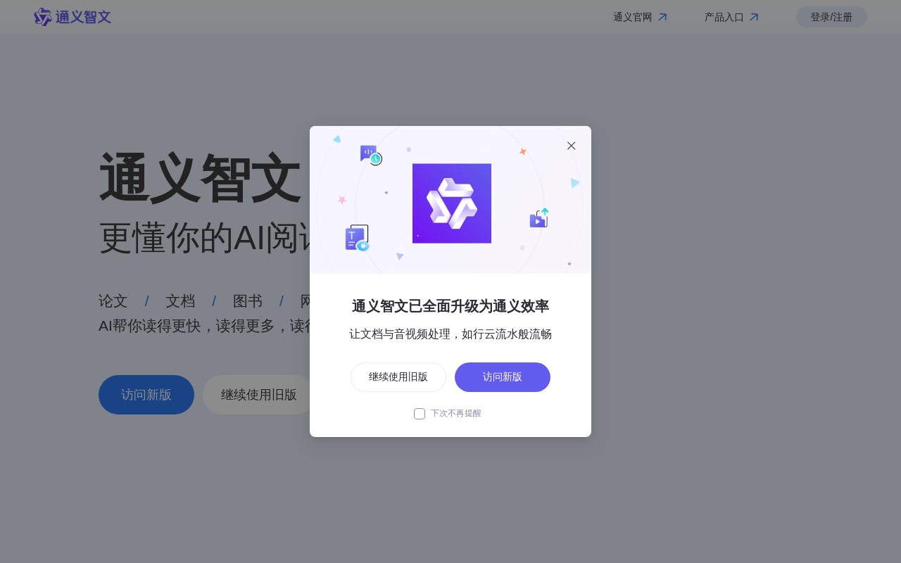 通义智文是阿里云推出的一款AI文档阅读与分析助手。它能帮你快速处理各种文档、网页和学术论文,把长篇大论变成清晰易懂的要点。