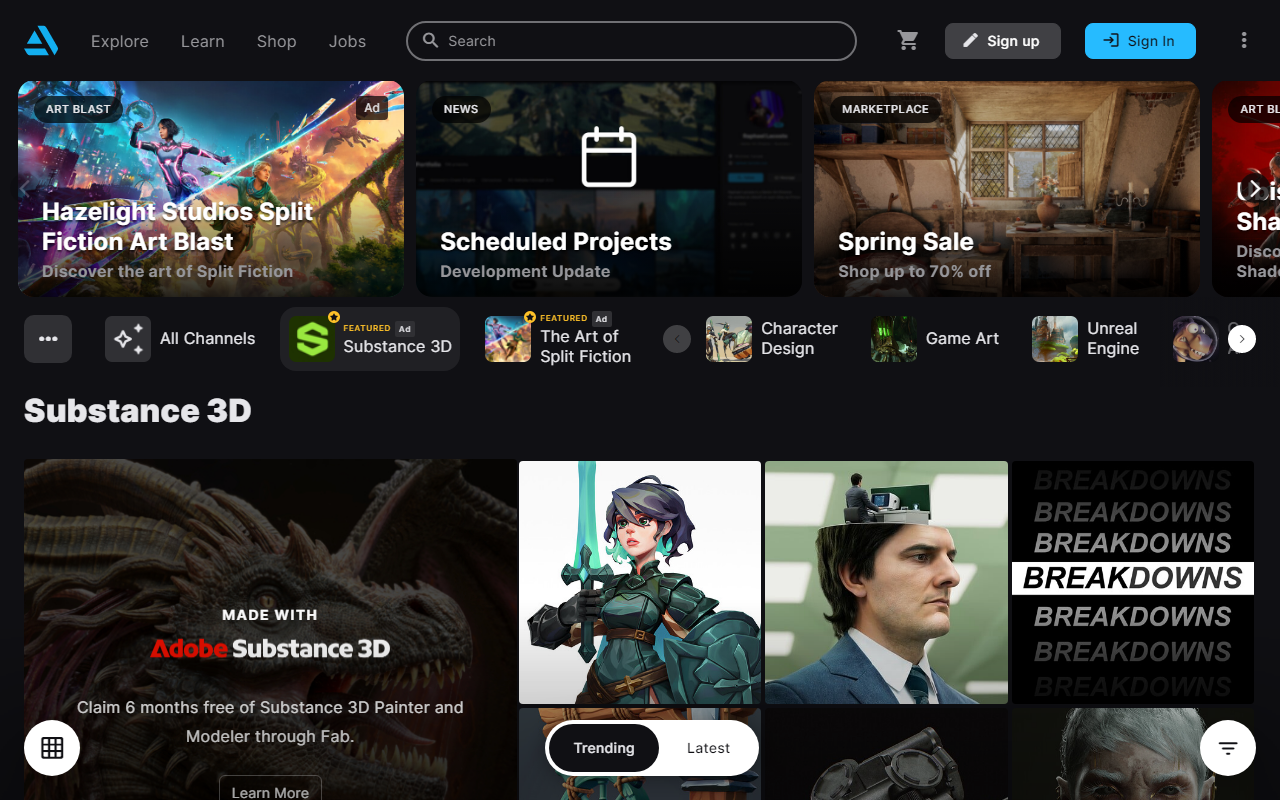 艺术家可以在这里出售数字资产,比如 3D 模型、纹理素材或者画笔预设。买家(通常是其他创作者或工作室)能直接购买用于自己的项目。