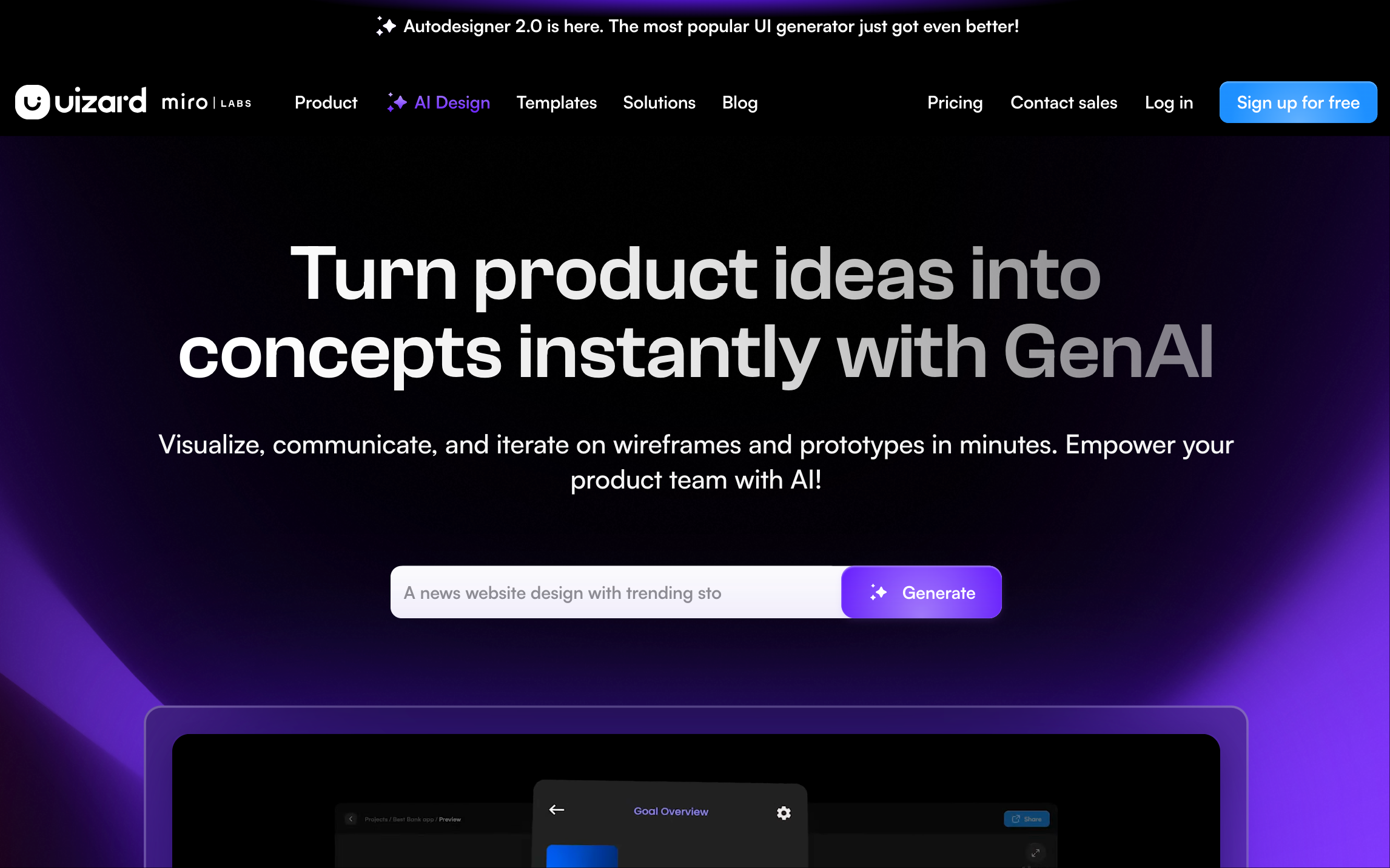 脑子里有个产品雏形,但手绘太丑,专业软件又不会用?Uizard想解决的就是这个痛点。它帮你把那些模糊的概念快速转化成看得见的线框图和原型,降低上手门槛,让非设计师也能参与早期设计。
